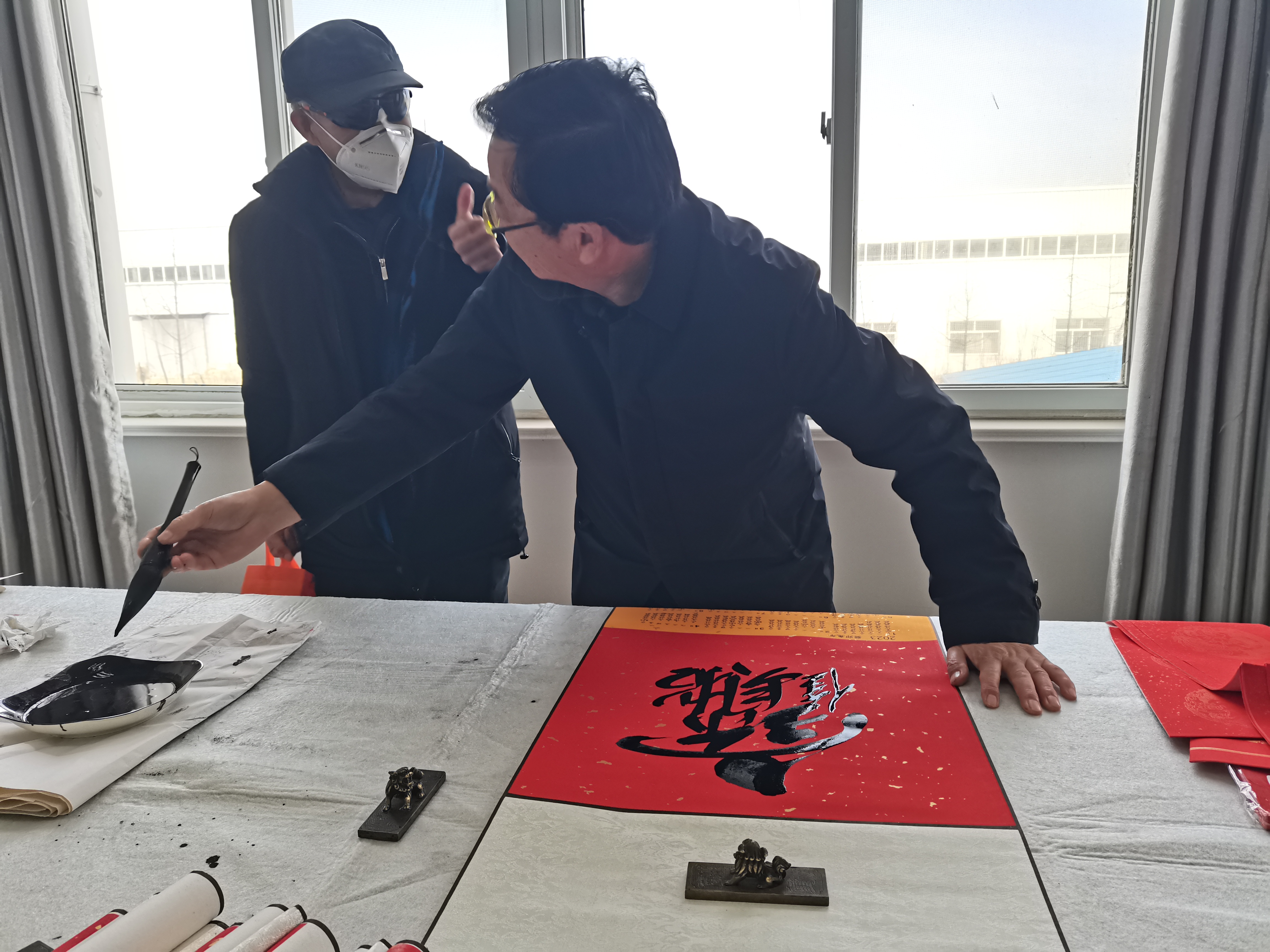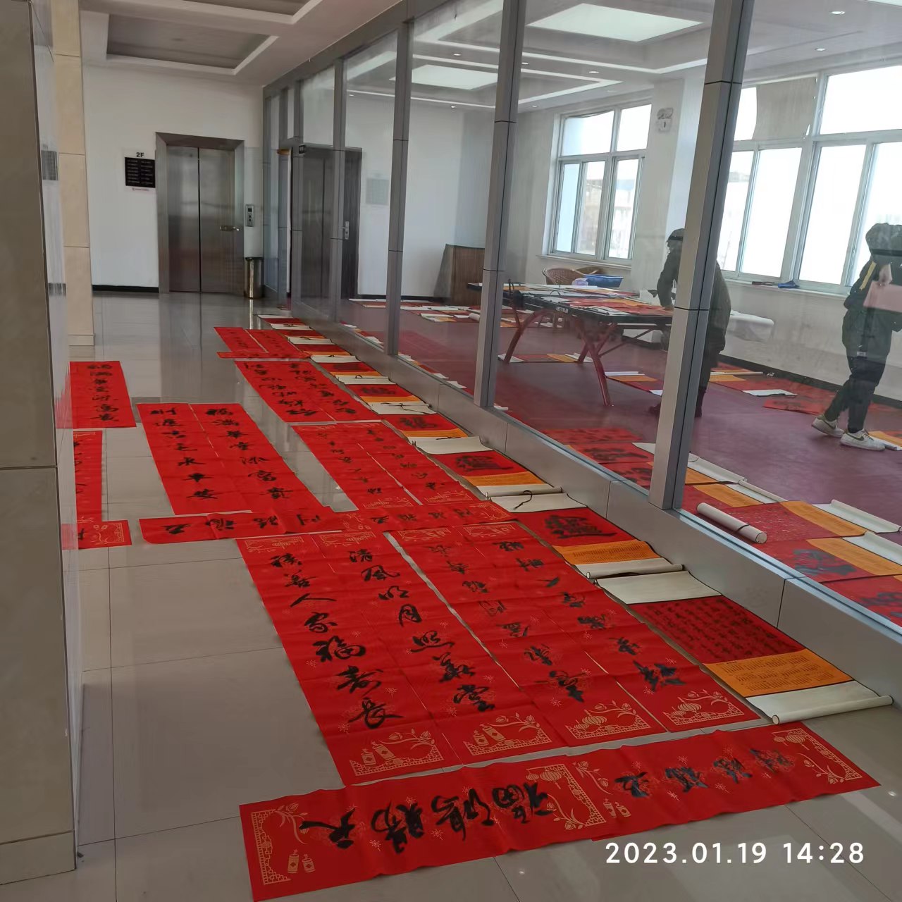 23年1月19日,公司邀请市书协数个会员到公司书写春联,并对公司书法爱好者进行了交流指导活动。活动中公司提前准备了春联卷轴、对联红纸、笔墨等材料。书法家在现场书写“福”字等挂件120余件,对联80副。各种对联等作品,由公司统一发放到各个部门,整个活动井然有序,气氛和谐欢快。